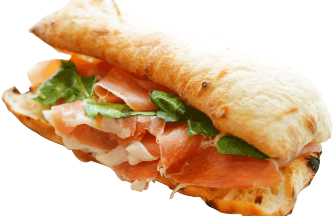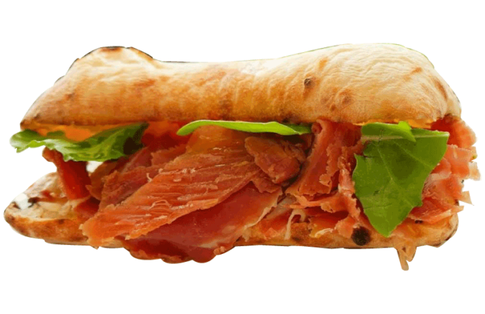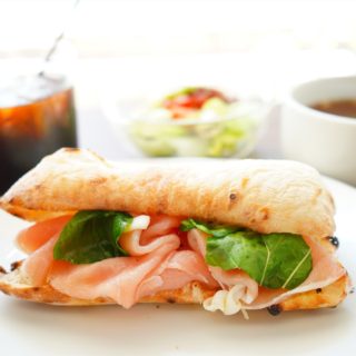 焼きたてのパンに大量のハムを!!!